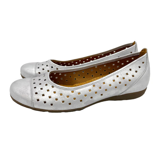 Gabor Ruffle Silver Leather Casual Ballet Flats | 64.169.61